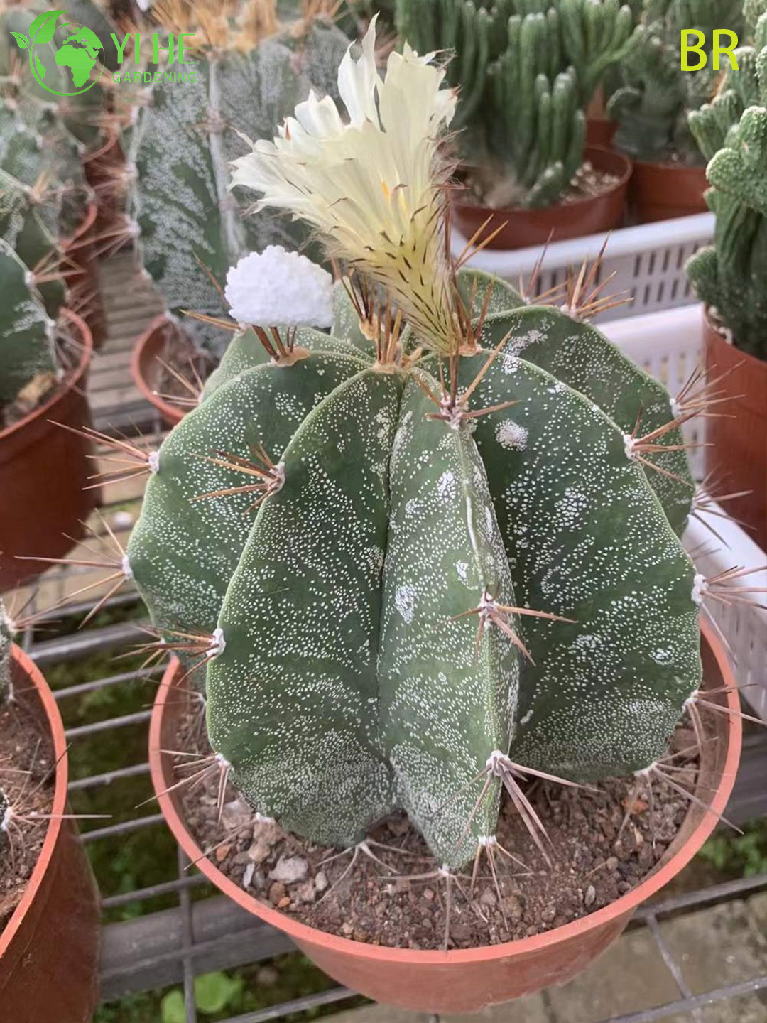 Коммерческая ценность и применение: Астрофитум орнатум относится к нишевым и премиальным продуктам на рынке суккулентов. Он пользуется высоким спросом среди коллекционеров, любителей редких кактусов и дизайнеров, ищущих уникальные декоративные элементы. Его медленный рост и уникальный внешний вид обеспечивают высокую маржинальность при оптовой реализации для специализированных магазинов, галерей и садовых центров.